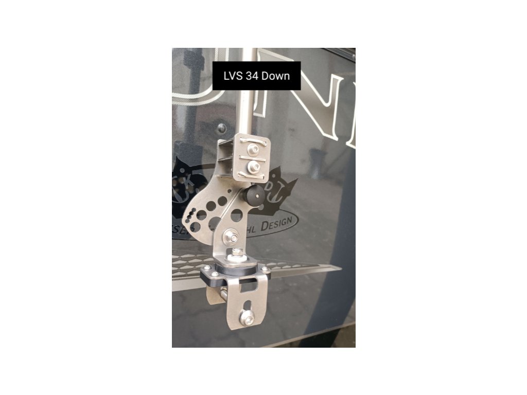 Součástí sestavy je nerezový držák sondy KedFlex 2.0, výměnná konzole Garmin LVS34 a otočné rameno s ukazatelem směru.