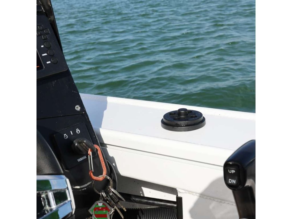 Nízkoprofilový držák pro připevnění a výměnu těžkého příslušenství HEXX na rovném povrchu.
