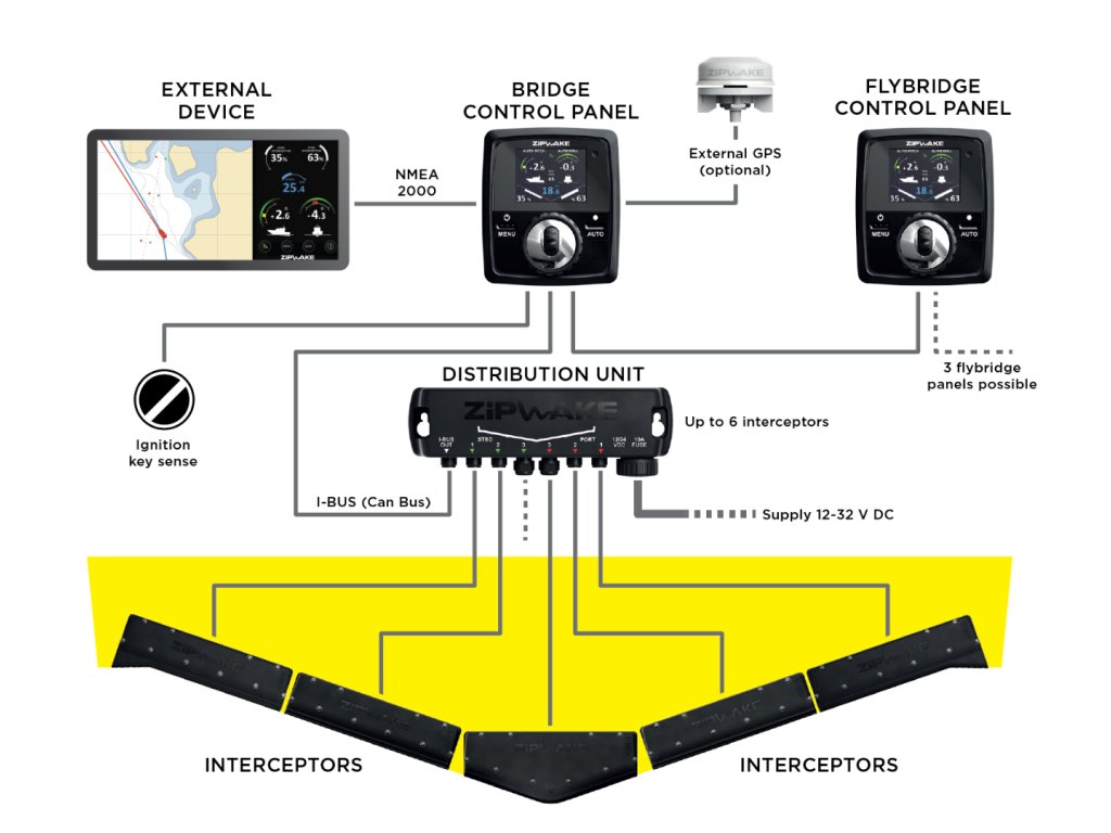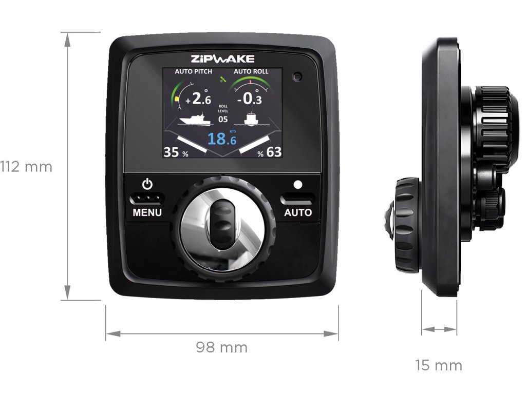 Stylový ovládací panel Zipwake je pečlivě navržen tak, aby byl uživatelsky přívětivý a intuitivní- tak, aby se řidič mohl soustředit na jedinou věc - užívat si jízdu na lodi!