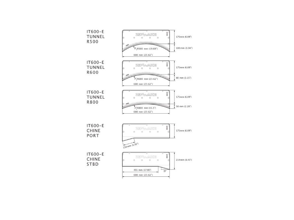 Série E je rodina velkých, rychle působících interceptorů, která zahrnuje tři rovné, tři tunelové a dva chine modely. Jejich rychlost čepele a zdvih jsou 40 mm / sa 60 mm. Velký modulární design vyrobený pro hromadnou výrobu znamená, že interceptory jsou odolné, cenově dostupné a obzvláště dobře přizpůsobené jakémukoli tvaru trupu u lodě člunu mezi 15-30m délky.