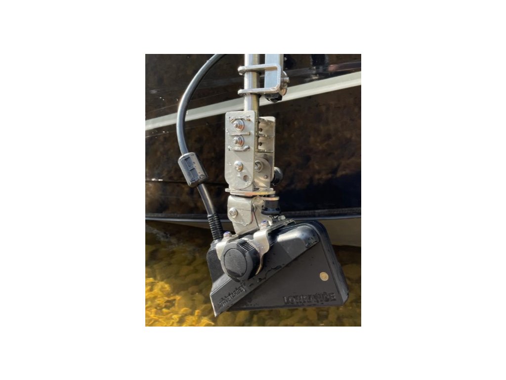 Součástí sestavy je nerezový držák sondy KedFlex 2.0, výměnná konzole Lowrance ActiveTarget a otočné rameno s ukazatelem směru.