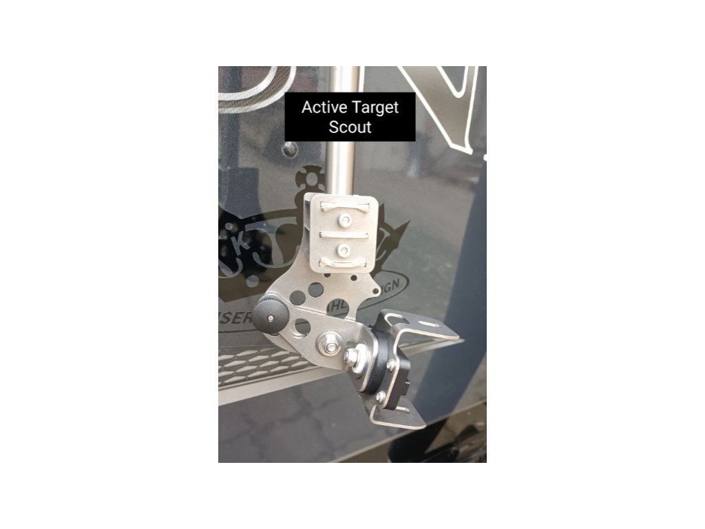 Součástí sestavy je nerezový držák sondy KedFlex, výměnná konzole KED ActiveTarget a skládací otočné rameno s ukazatelem směru.