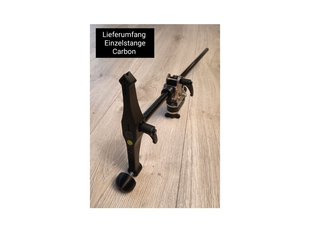 Geberstange je vybavena všemi potřebnými otvory pro KED Geberaufnahmen. Samozřejmě lze geberstange otáčet o 360 stupňů pomocí dodávané rukojeti (černý otočný rameno), což usnadňuje aktivní vyhledávání ryb při používání Live-Technik.