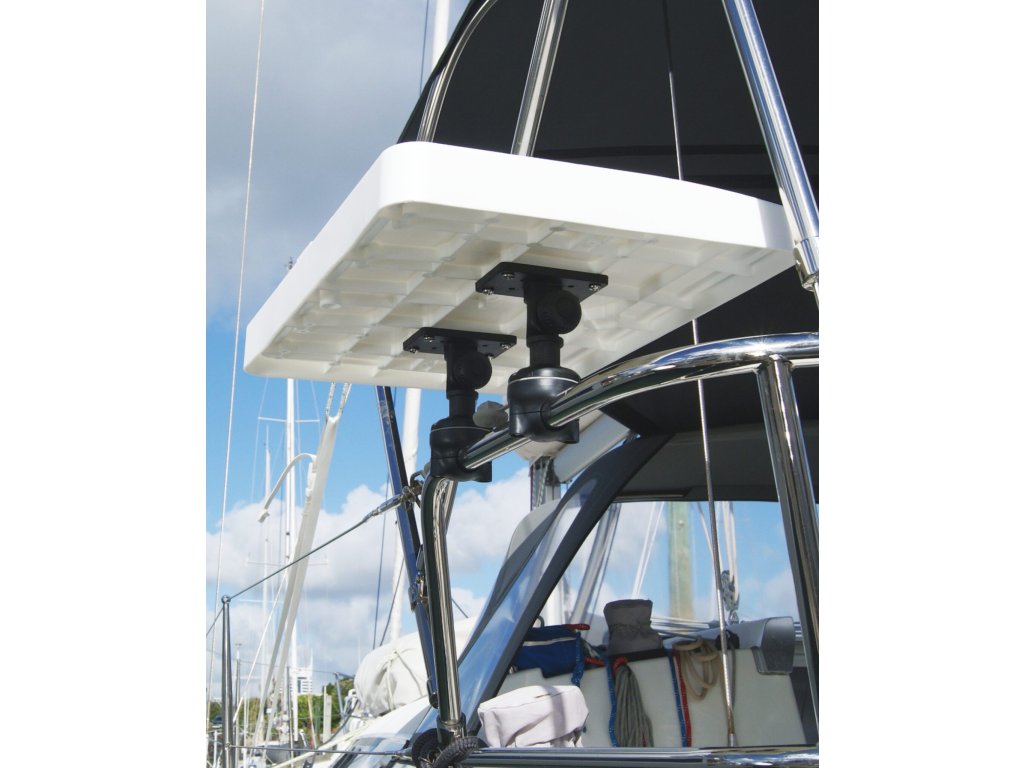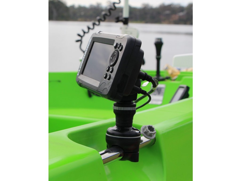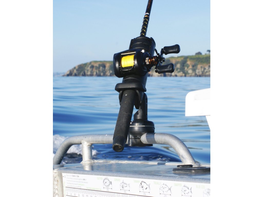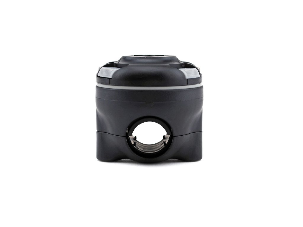 Praktický svorkový úchyt. Vhodný pro kolejnice o průměru 3/4” (19 mm) nebo 1” (25 mm).